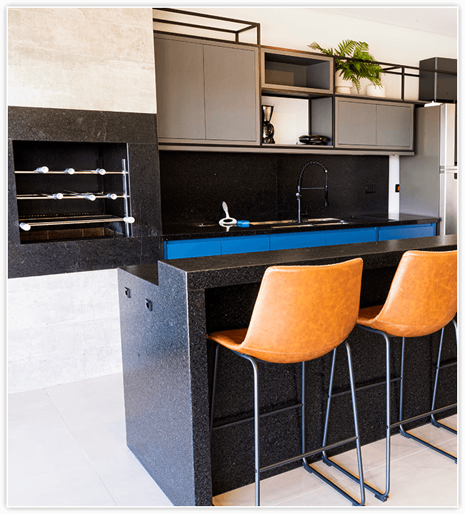 A área gourmet é completa, com uma linda mesa em madeira, churrasqueira, cooktop, louças, máquina de gelo, cafeteira, sanduicheira, geladeira e cervejeira a seu dispor. Possui também uma lavanderia com máquina de lavar para maior comodidade.